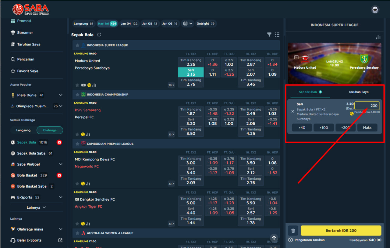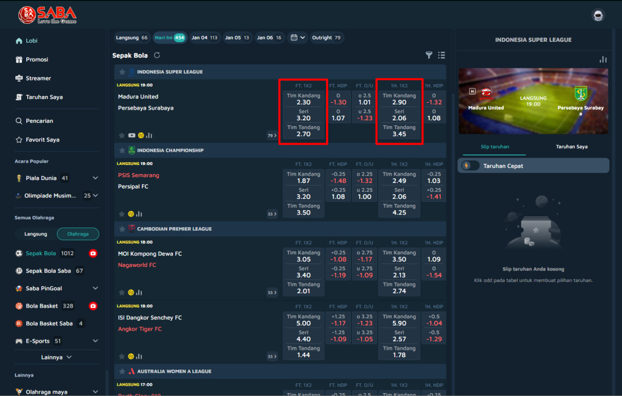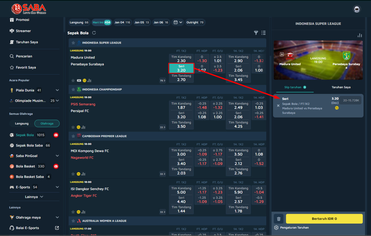 π Cara Bermain Single Bet 1X2 di SABA SPORTS
