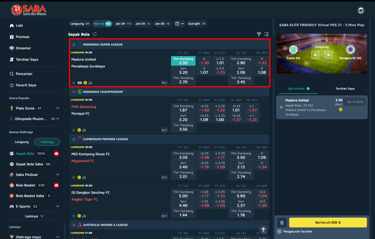 Melalui Panduan Bermain Single Bet 1X2 di SABA SPORTS ini, pemain dapat memahami cara bermain, keunggulan, hingga strategi yang tepat sebelum memasang taruhan.