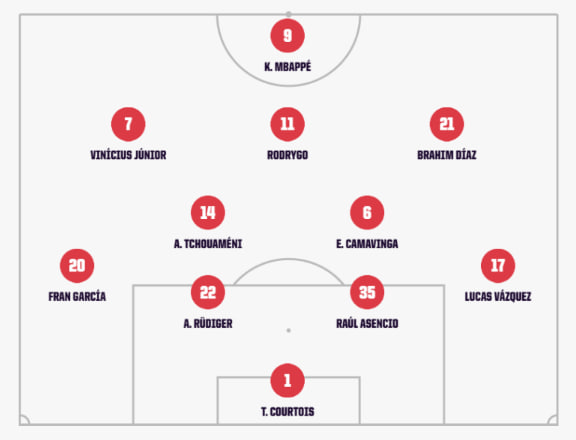 Gelandang: Toni Kroos, Federico Valverde, Eduardo Camavinga